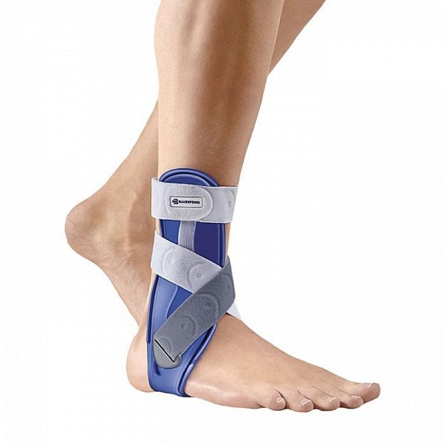 Голеностопный ортез жесткий с ремнем восьмерка MalleoLoc BAUERFEIND 1237 производится из современных легких и износостойких материалов, которые не вызывают аллергии. Жесткий фиксатор лодыжки 1237 MalleoLoc BAUERFEIND имеет анатомическую форму, благодаря чему обеспечивается идеальное прилегание, что позволяет использовать его в обуви. Бандаж на ногу при травмах связок MalleoLoc 1237 BAUERFEIND оборудован плоским ремнем в виде «восьмерки» с контактной лентой «велкро». Тутор голеностопа MalleoLoc BAUERFEIND 1237 применяется для иммобилизации лодыжки при травмах ноги (голеностопного сустава). Ортез на щиколотку BAUERFEIND MalleoLoc 1237 жесткий осуществляет стабилизацию при сильных вывихах голеностопа, разрывах связок, а также растяжениях и повреждениях связочно-мышечного аппарата лодыжки. Также лодыжечный бандаж 1237 MalleoLoc BAUERFEIND ограничивает боковые движения голеностопного сустава, при сохранении нормальной биомеханики стопы (перемещение с пятки на носок), а благодаря подошвенному язычку, который стимулирует нервную и мышечную ткани, обеспечивается надежная защита от возможных последующих травм. Фиксатор ноги жесткий BAUERFEIND 1237 MalleoLoc 1237 выпускается в двух исполнениях левом и правом.