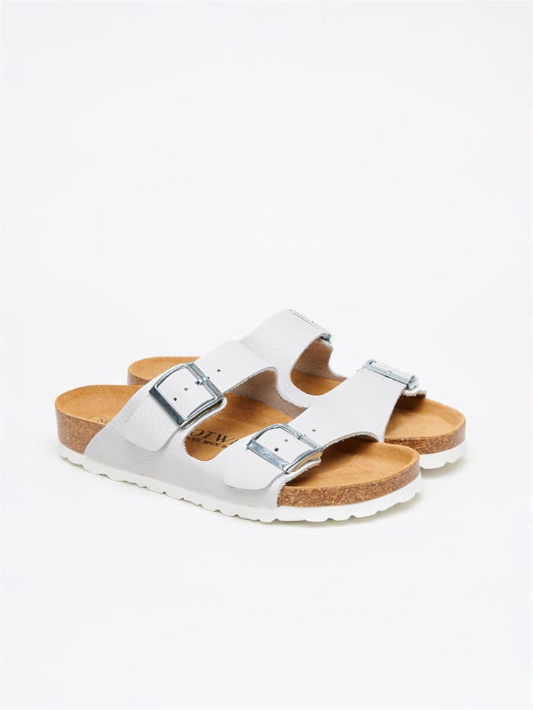 Удобные ортопедические женские сабо из натуральной кожи 520015-121 White FOOTWELL производятся на основе из натуральной пробки чашеобразной формы, фиксирующей стопу и препятствующее её смещению при движении, предупреждая возможные подвывихи, а стелечное ложе выполнено из натуральной бархатистой кожи. Подошва босоножек - из EVA-полимера с рельефным рисунком. Верх обуви сделан из натуральной кожи. Полнота регулируется с помощью двух ремней с металлическими застежками «пряжками». Для поддержки стопы в физиологически верном положении пробковая основа оборудована полной анатомической выкладкой, включающей и продольный, и поперечный супинаторы, а также ложе для пальцев, что обеспечивает превосходную амортизацию и распределение нагрузки. Женская ортопедическая обувь 520015-121 White FOOTWELL применяется как для профилактики, так и для коррекции плоскостопия.